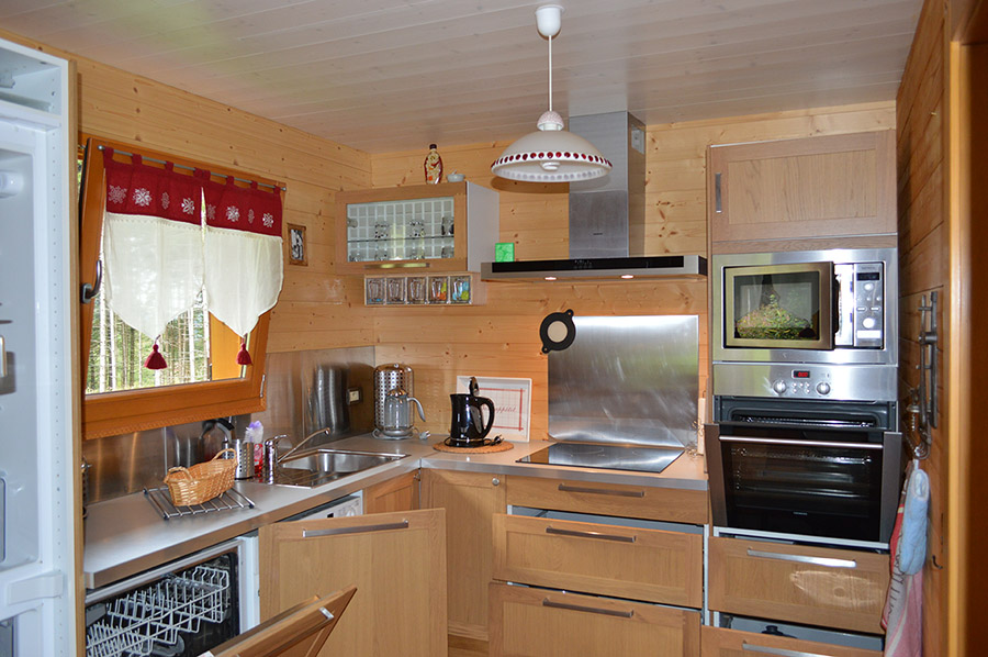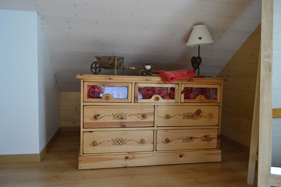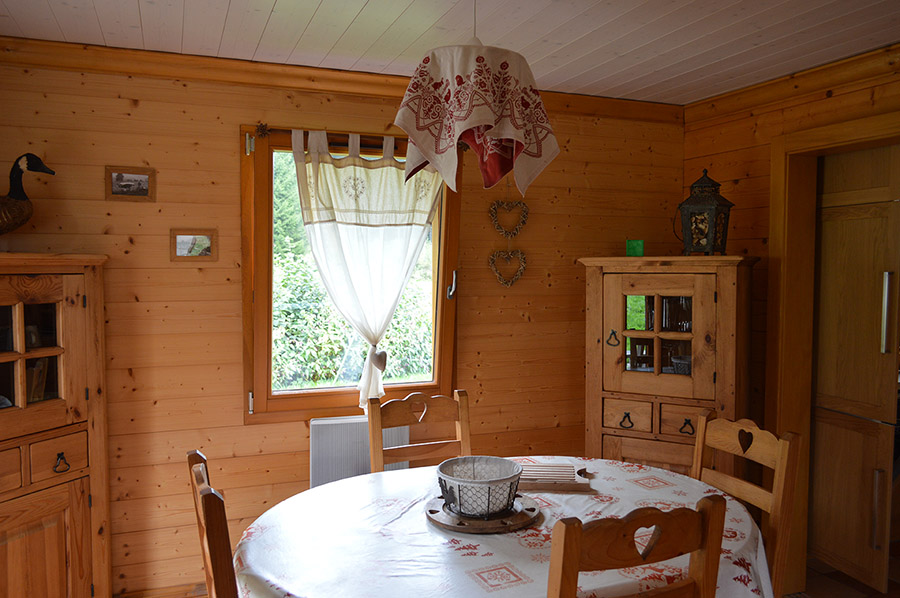 Décoration intérieure de meubles en pin de qualité, situé en lisière de forêt, au fond d'une impasse, calme mais non isolé.
